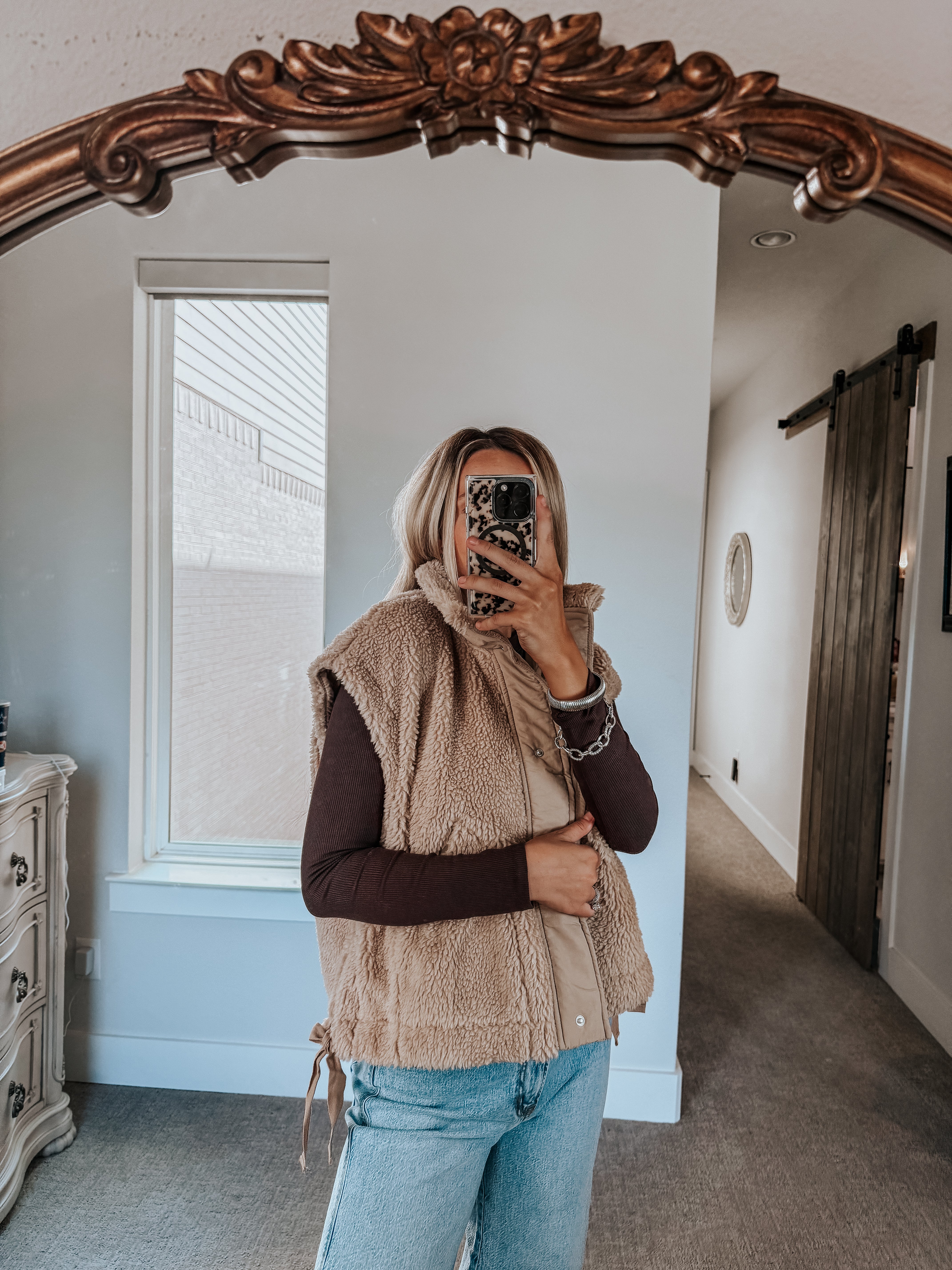 Wrap yourself in all-day comfort with the Everyday Cozy Sherpa Vest. Designed with an oversized fit that creates a relaxed cap-sleeve effect, this vest is as effortless as it is cozy. The soft sherpa fabric keeps you warm without feeling bulky, while the snap-button placket makes it easy to throw on and go. Whether you’re running errands, layering for outdoor adventures, or just keeping it casual, this vest is your new go-to for laid-back style and everyday wear.