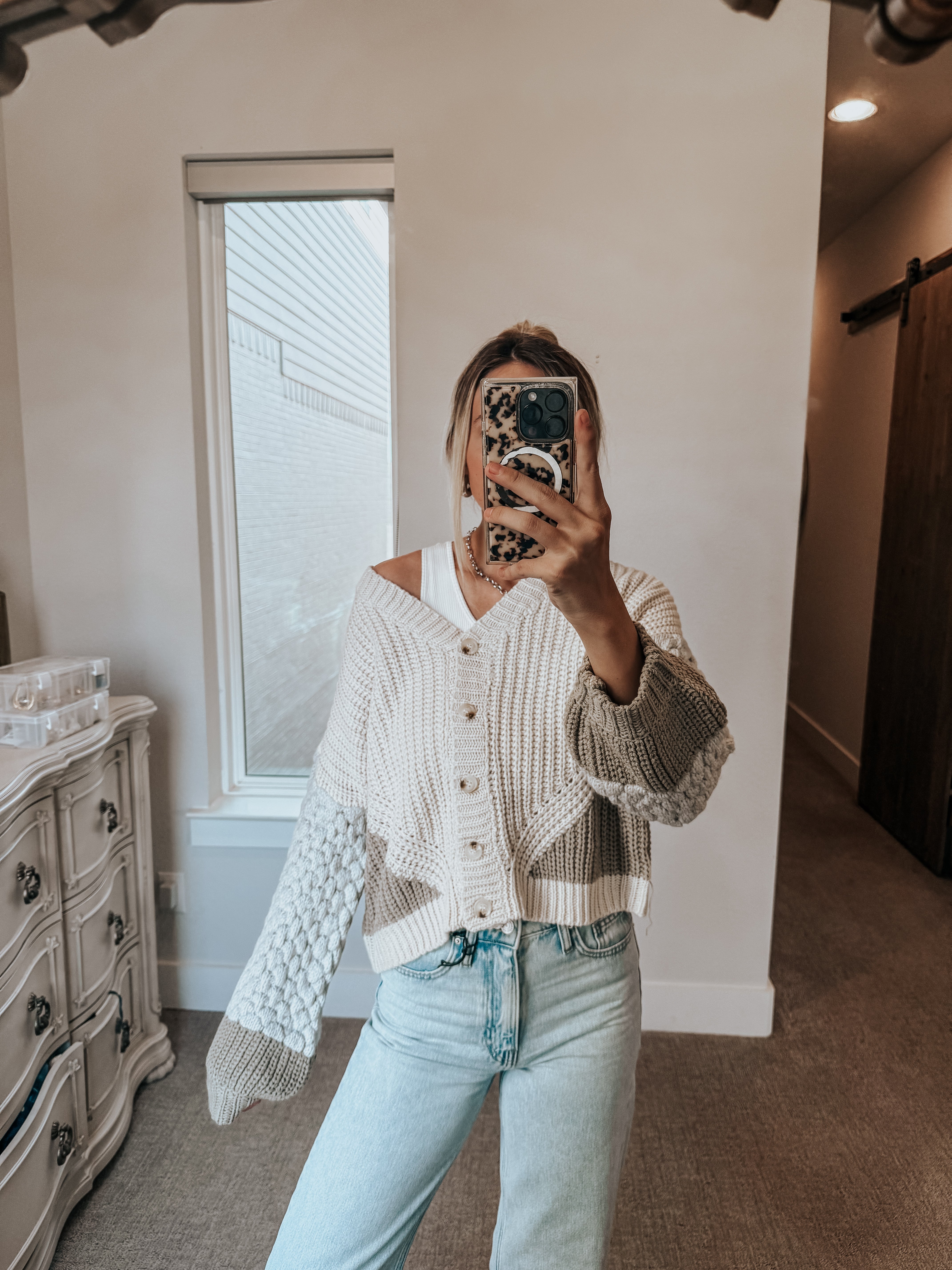 This cozy-chic cardigan is the perfect blend of classic texture and modern style. Designed with chunky cable knit sleeves and contrasting ribbed panels, it brings just the right amount of visual interest while staying effortlessly wearable. The deep V-neckline and button-front closure make it easy to layer, while the wide ribbed cuffs and hem add structure and comfort.